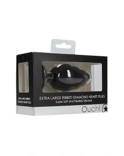 Shots Toys Extra Large Ribbed Diamond Heart Plug – 3.8 Inch – Black – Extra Large
