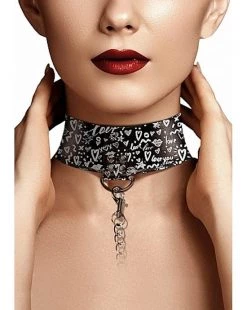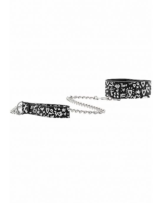 Shots Toys Collar With Leash – Love Street Art Fasion – Black – One Size