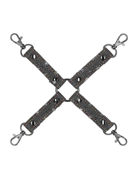 Your favourite wrist and ankle cuffs are here with this 4-WAY Denim Hogtie Cross. Full body restraint has never been so easy, just clip your sub’s arms and legs behind their back, or in front, for total control and submission!