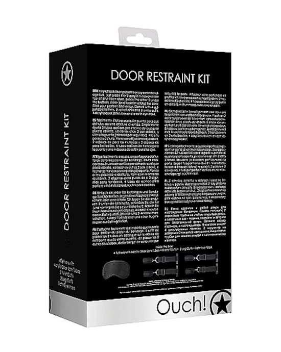 Easily attach to any door to enjoy some bondage fun. Just place the 2 acrylic tubes over the top of any open door, place the other 2 under the bottom, close (and lock for safety) the door. Bind your partner and enjoy. Comes with 4 adjustable tethers, 2 velvet wrist and 2 ankle cuffs, 4 acrylic door jam tubes and a satin eye mask.