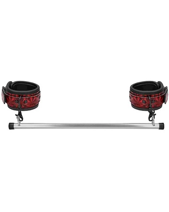 The Ouch! Luxury Spreader Bar in Burgundy is designed to keep your legs open for business and make sex that much easier! This sturdy metal spreader bar comes combined with 2 attached ankle cuff. The black cuffs are made from comfortable neoprene and patent vinyl with a trendy diamond pattern.