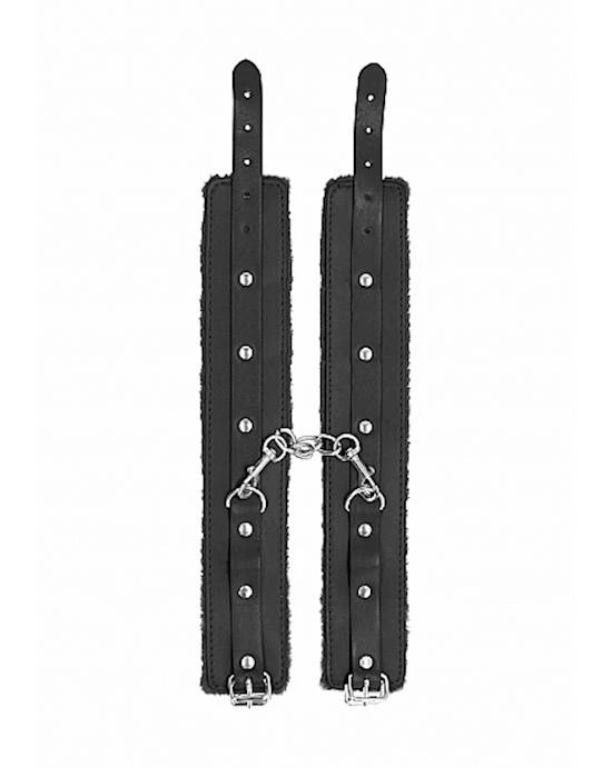 These cuffs have a furry lining, an adjustable strap with a sturdy clasp for a perfect fit and an attached ring for easy hook-ups!