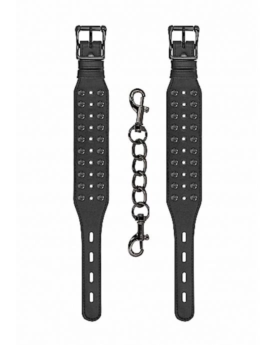 With two rows of impressive spikes, a double clasp on each ankle cuff and a sturdy, detachable, metal connection, this cuff shows you mean business. Made of high-quality black Bonded Leather and dark grey metal, these Spiked Ankle Cuffs always do the trick!