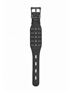 Two rows of little skulls and a double clasp complete this impressive arm band! Made of high-quality black Bonded Leather and dark grey metal, this is a seriously well-made bracelet that will make you look even more in charge as a dom!