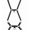 Made in beautiful soft black Bonded Leather embellished with skulls and spikes, this harness looks and feels like serious bondage gear. Metal rings connect the straps and there is an additional ring front and back for maximum control possibilities during playtime!