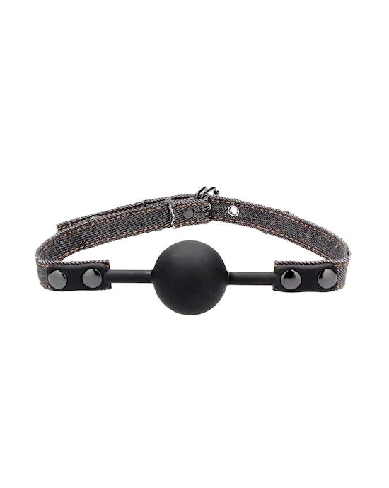 Keep you lover quiet with this distinctive ball gag. Slip the ball into your sub’s mouth and adjust the denim straps (finished with 5 holes) for a snug fit.