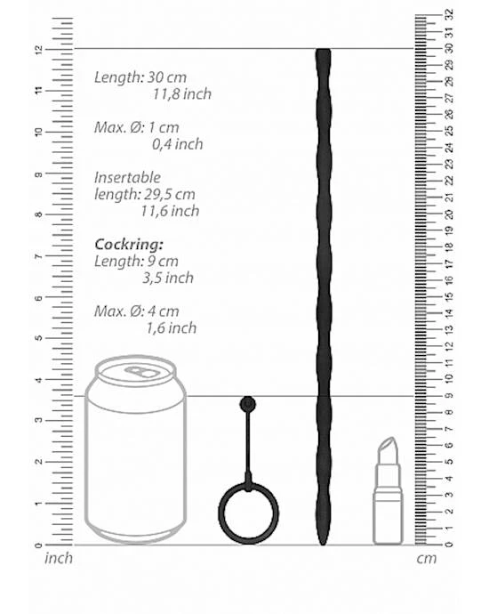 This is made from super-smooth medical grade, phthalate-free silicone it has a total length of 30cm (11.8″), an insertable length of 29.5cm (11.6″) and a diameter of 1cm (0.4″). Always use with a generous helping of sterile water-based lubricant and insert slowly and incrementally for maximum pleasure
