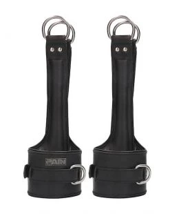 Suspend your sub with these real leather heavy-duty SUSPENSION WRIST BONDAGE HANDCUFFS! Made from genuine leather, these BDSM restraint cuffs provide great comfort while leaving your slave suspended and yearning for more.